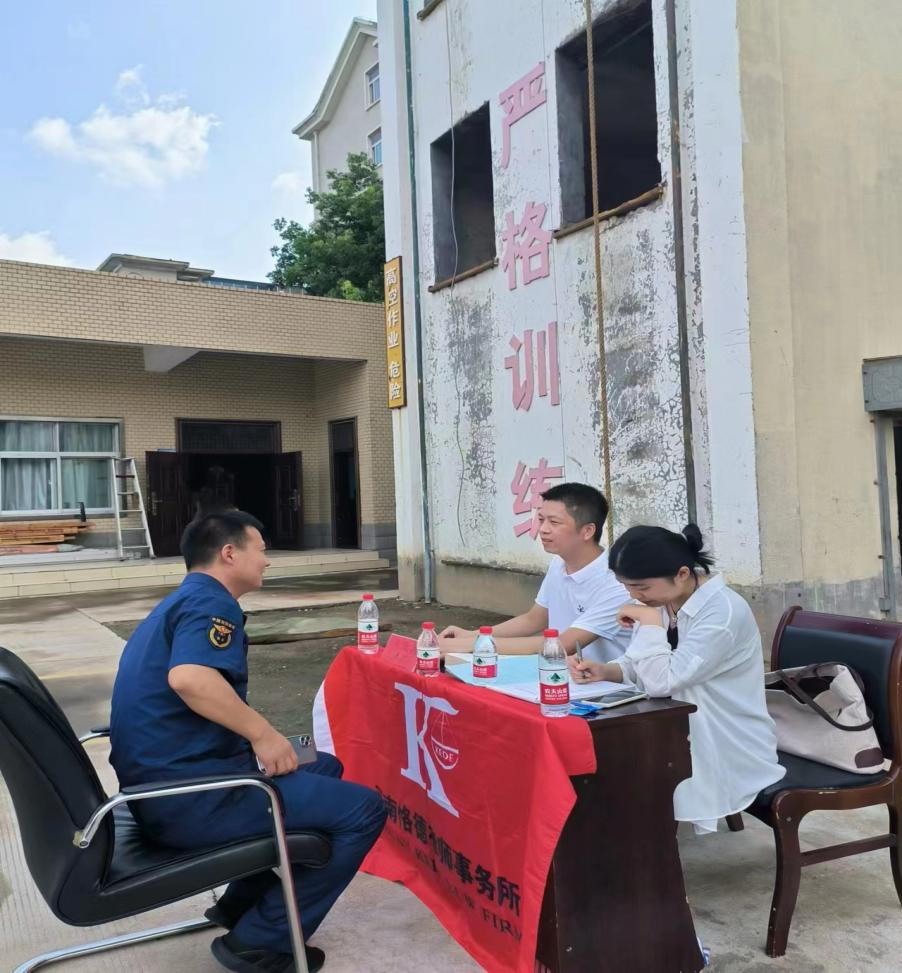 在“八一”建军节即将到来之际,河南恪德律师事务所党支部书记陈继超带领党员律师及律所青年律师对“哪里有困难他们就在哪里,不畏严寒酷暑,都坚守自己的岗位,为人民服务着”的消防战士送去了慰问,并进行公益法律咨询。