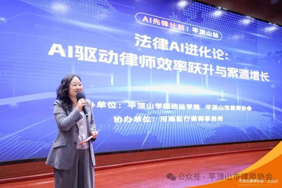 2025年4月3日下午,由平顶山市律师协会、平顶山学院政法学院联合主办,河南前行律师事务所协办的“AI驱动律师效率跃升与案源增长”专题培训在平顶山学院中心会议室举行。培训邀请北京新橙科技有限公司的工程师兰洋老师现场集中授课。市律师协会副会长常静主持培训。